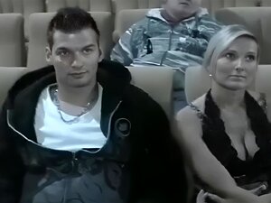 Nikita Valentin, une blonde aux gros seins, laisse les mecs la caresser au cinéma, tout en regardant un film
