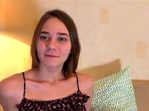 Une mignonne timide fait un casting porno