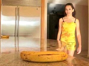 Regardez cette chaude beauté danser avec une banane sur sa webcam HD! Vous nen croirez pas vos yeux!