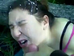 Une nana soumise suce une bite et avale une chaude giclée de sperme