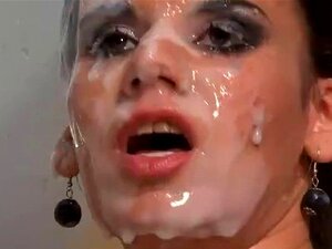 Avalage de foutre Euro bukkake. Avaler du sperme Euro bukkake salope en groupe se fait couvrir de sperme