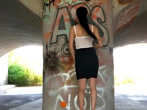 Une fille coquine montre sa chatte dans la rue. Une femme sans honte aime montrer sa chatte, mais c'est plutôt peu conventionnel - avoir une fente sur son short libère toujours vos jambes, mais se concentre aussi sur son beau cameltoe