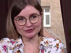 MILF rousse en bretelles suce la bite du journaliste pendant le casting