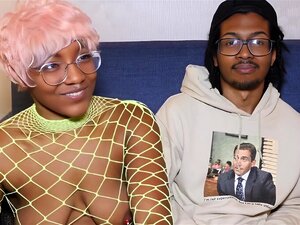 Une ébène prend une grosse giclée sur le visage. La demi-sœur ébène Luna Corazon fait une pipe debout sur ses genoux