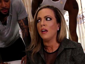 Gros nichons, salope blonde Sarah Vandella en acte DP interracial