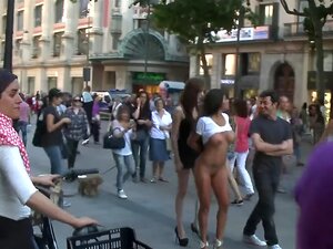 Superbe Latina aux gros seins Yoha Galvez se promenait nue dans les rues publiques par la princesse Donna Dolore et James Deen puis dans un bar bondé brutalement baisée et fouettée
