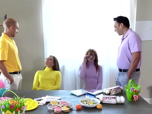 Jouer avec les couilles de beau-père le jour de la belle-mère. La lubrique Katie Kush et son amie Maria Kazi s'habillent en tenues de football sexy pour offrir au beau-père un plan à trois pour la fête des beaux-pères