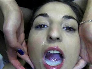 Salope latina baisée et aspergée de sperme dans un gangbang hardcore