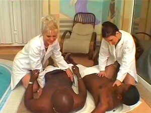 Les masseuses européennes ont leurs chattes trempées étirées par un black à bite