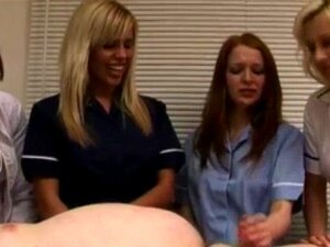 Une petite bite éjacule pour quatre infirmières qui rigolent. Une petite bite éjacule pour quatre infirmières qui rient chaudement à son rendez-vous chez le docteur