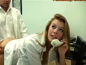 Au lieu de faire son boulot, la secrétaire blonde et excitée se fait baiser par le cul par un collègue