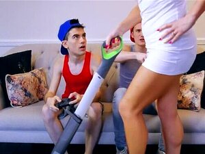 Brenna et Vanessa se font sodomiser et partagent une éjaculation interne. PAWG huilé n'a pas de limites dans le sexe. Les chiennes aux petits seins se font défoncer les trous anaux profondément et durement et lèchent les couilles du mec en même temps. Van