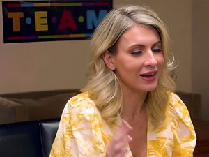Une amatrice mince et nerveuse fait un plan à trois au casting. Une modèle amateur rousse et nerveuse fait l'amour lesbien avec une brune à gros seins naturels, puis son assistante les rejoint dans un trio au bureau