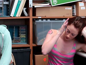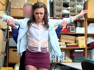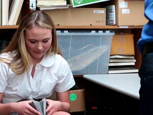 Un flic du centre commercial a surpris cette mignonne blonde, c'est donc le moment de baiser. Après qu'un flic du centre commercial ait surpris cette mignonne voleuse blonde en pleine action, elle doit endurer une baise punitive dans le back office pour