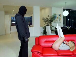 Une blonde chaude en otage se fait baiser le cul. Le voleur Mr Pete attache la propriétaire blonde sexy Lisey Sweet puis lui baise le cul chaud profondément dans diverses positions sur le canapé du salon