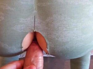 La demi-sœur nympho se fait percer et remplir de sperme dans des culottes de yoga déchirées pendant qu'elle fait de l'exercice